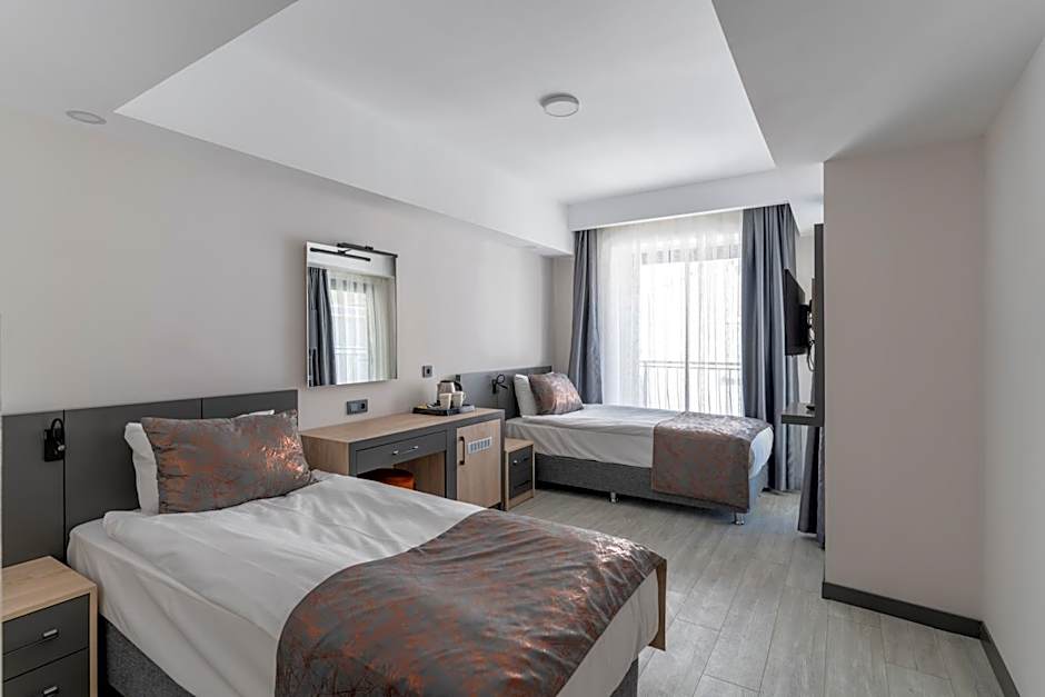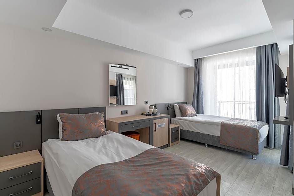 This air-conditioned twin room is consisted of of a flat-screen TV with satellite channels, a private bathroom as well as a balcony with pool views. The unit has 2 beds.